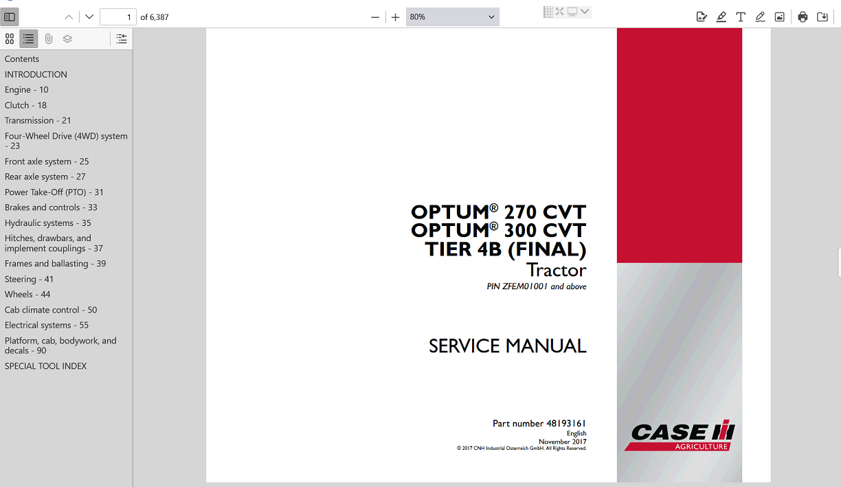 | Included Items | Complete Service Repair Manual for Case Optum 300 CVT Tractor |