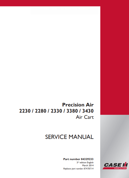 Case Precision Air Cart 2230, 2280, 2330, 3380, 3430 Service Repair Manual
