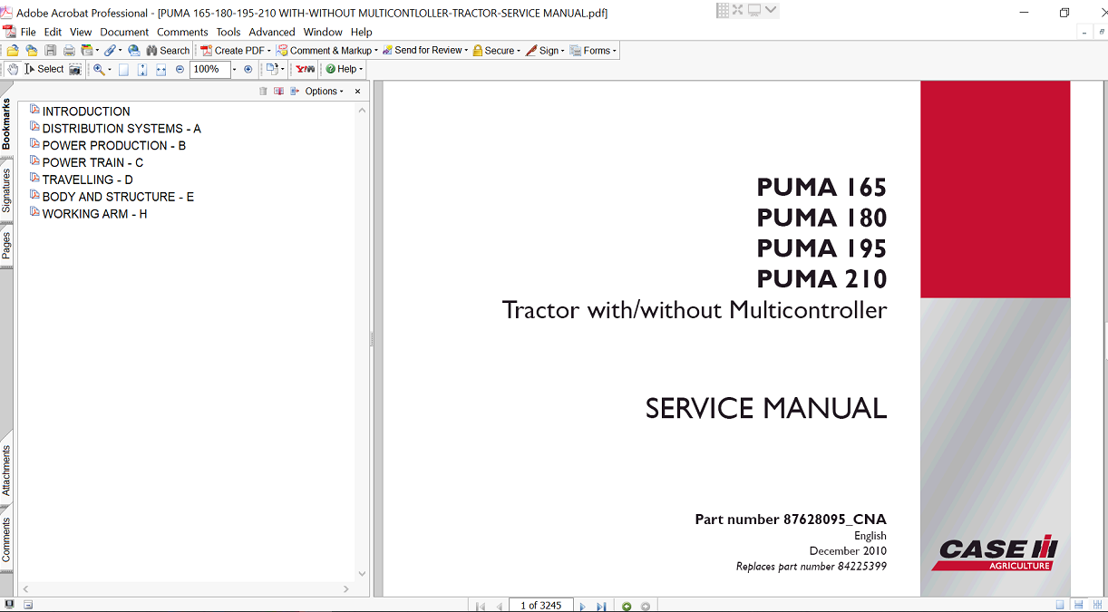 | Included Items | Complete Service Repair Manual for Case IH Puma 180 Tractor |