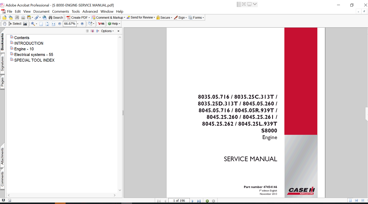 | Included Items | Service Repair Manual for Case S8000 Series Engine |