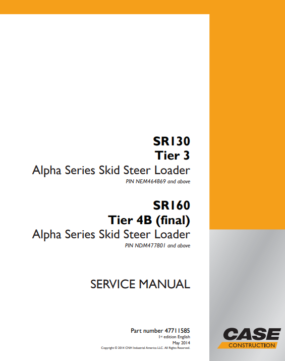 Case SR130 Tire 3, SR160 Tire 4B Skid Steer Service Repair Manual