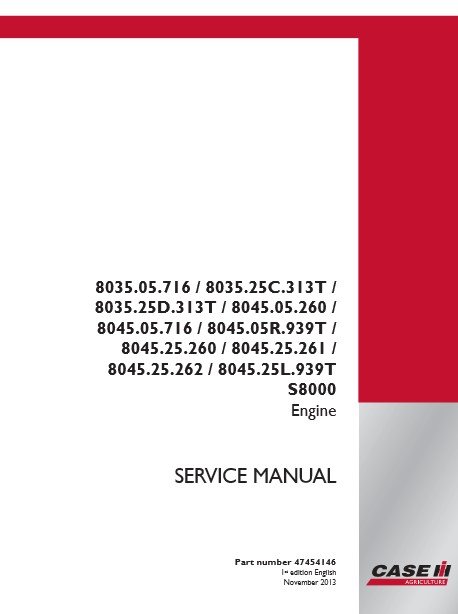 The Case IH 8035 and 8045 Series Service Repair Manual is an essential resource for any owner or technician looking to maintain and repair these powerful agricultural machines. This comprehensive guide provides detailed instructions, diagrams, and troubleshooting tips to ensure optimal performance and longevity of your equipment. With clear, step-by-step procedures, you can confidently tackle repairs and maintenance tasks, saving time and money while keeping your machinery in peak condition. Invest in this manual to enhance your operational efficiency and ensure your Case IH equipment runs smoothly for years to come