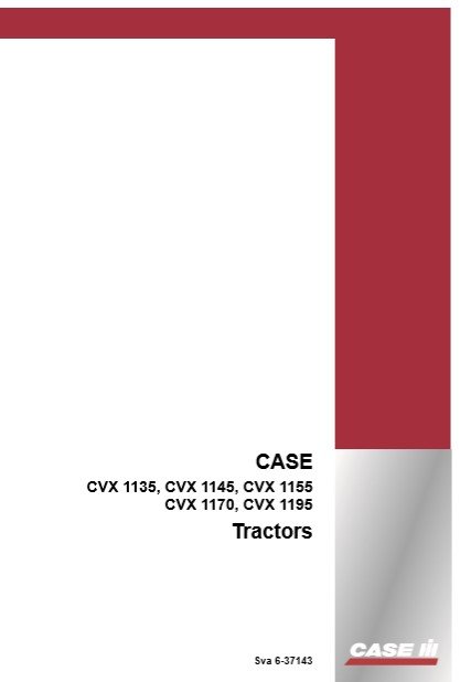 Enhance your operational efficiency with the Case CVX 1135, 1145, 1155, 1170, and 1195 Tractors Operators Manual. This comprehensive guide provides essential information on the features, maintenance, and troubleshooting of your tractor, ensuring optimal performance and longevity. With clear instructions and detailed diagrams, this manual is an invaluable resource for both seasoned operators and newcomers alike, empowering you to maximize productivity on the field. Invest in your equipment’s success and keep your tractor running smoothly with this indispensable manual