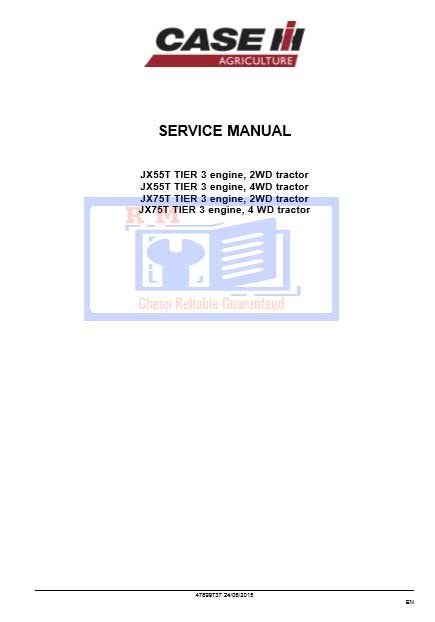 The Case JX55T and JX75T Tractors Service Repair Manual is an essential resource for any tractor owner or mechanic. This comprehensive guide provides detailed instructions, diagrams, and troubleshooting tips to ensure your equipment operates at peak performance. With clear, step-by-step procedures, you can confidently tackle repairs and maintenance tasks, saving time and money. Invest in this manual to enhance your understanding of your tractor and keep it running smoothly for years to come
