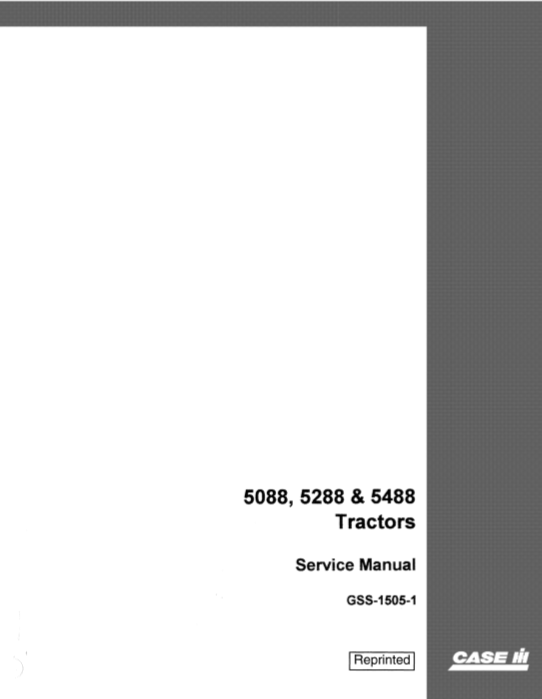 The Case 5088, Case 5288, and Case 5488 Tractors Service Repair Manual is an essential resource for any owner or technician looking to maintain and repair these powerful agricultural machines. This comprehensive manual provides detailed instructions on troubleshooting, servicing, and repairing various components of the tractors, ensuring optimal performance and longevity. With clear diagrams, step-by-step procedures, and in-depth explanations, users can easily navigate through complex repairs and maintenance tasks. Whether you are addressing engine issues, hydraulic system malfunctions, or electrical problems, this manual equips you with the knowledge and confidence to tackle any challenge. Invest in this indispensable guide to keep your Case tractor running smoothly and efficiently, maximizing your productivity on the field