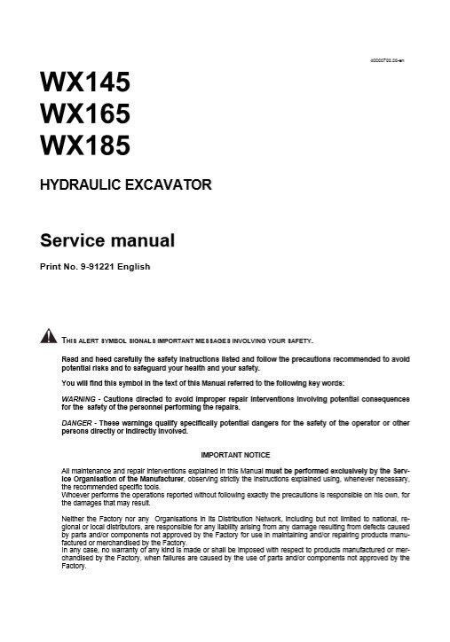 Enhance your maintenance capabilities with the Case WX145, WX165, and WX185 Excavator Service Repair Manual. This comprehensive guide provides detailed instructions, diagrams, and troubleshooting tips to ensure your excavator operates at peak performance. With easy-to-follow steps, you can confidently tackle repairs and maintenance tasks, saving time and reducing downtime. Invest in this essential manual to extend the life of your equipment and maximize your productivity on the job site