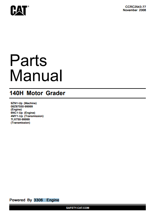 The Caterpillar 140H Motor Grader Parts Manual is an essential resource for maintaining and repairing your grader with precision. This comprehensive guide provides detailed diagrams, part numbers, and specifications, ensuring you can easily identify and source the correct components for optimal performance. With this manual, you can enhance the longevity of your equipment, reduce downtime, and ensure that your grader operates at peak efficiency. Invest in this indispensable tool to keep your Caterpillar 140H in top condition and maximize your productivity on the job site