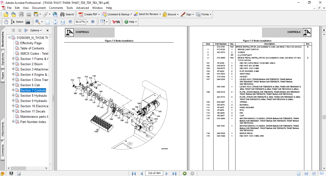 Caterpillar TH336, TH337, TH406, TH407 Telehandlers Parts Manual