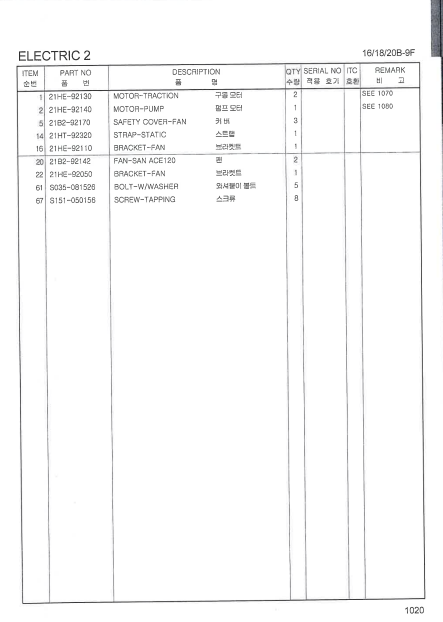 Hyundai Forklift 16, 18, 20B-9F Parts Manual
