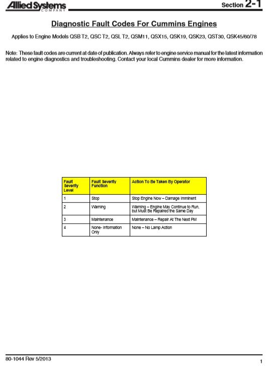 With This Original Factory Document The Technician can find Genarel Fault Codes to solve any problems encountered in the operation of your Cummins Engines Models of :
