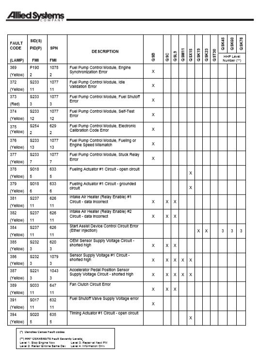 Cummins Diagnostic Fault Codes List For Cummins Engines