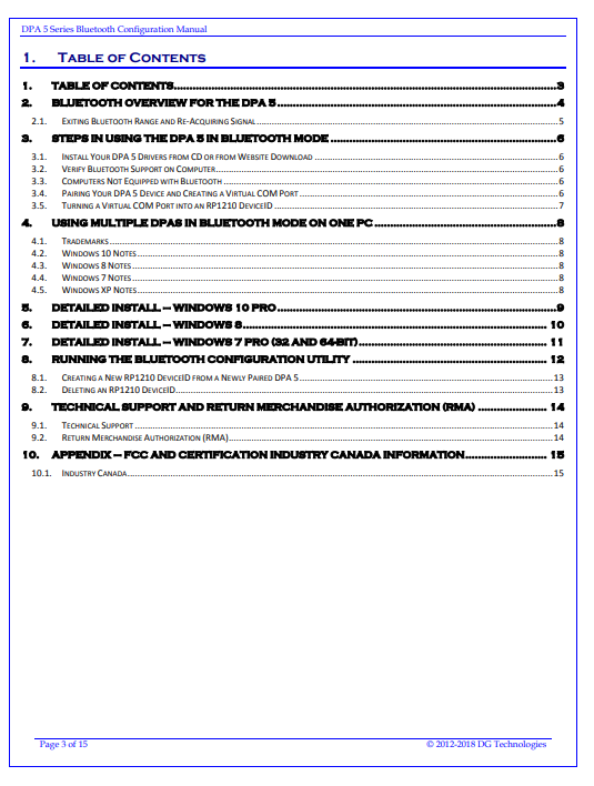 DG Technologies DPA 5 Series Bluetooth Configuration Manual