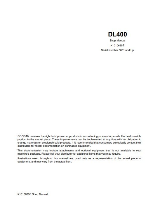 Whether you’re performing a quick service or a complete overhaul, this manual is your essential companion for maximizing the performance and longevity of your Doosan DL400 Wheel Loader