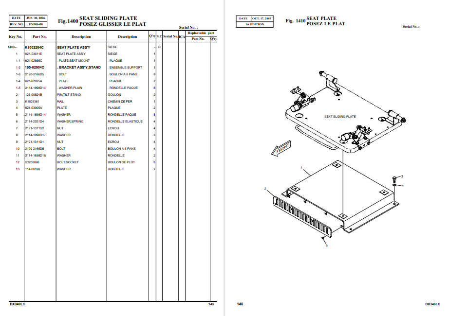 Doosan DX340LC Excavator Parts Manual