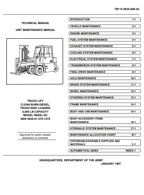 Drexel R60SL-DC Forklift Technical and Maintenance Manual