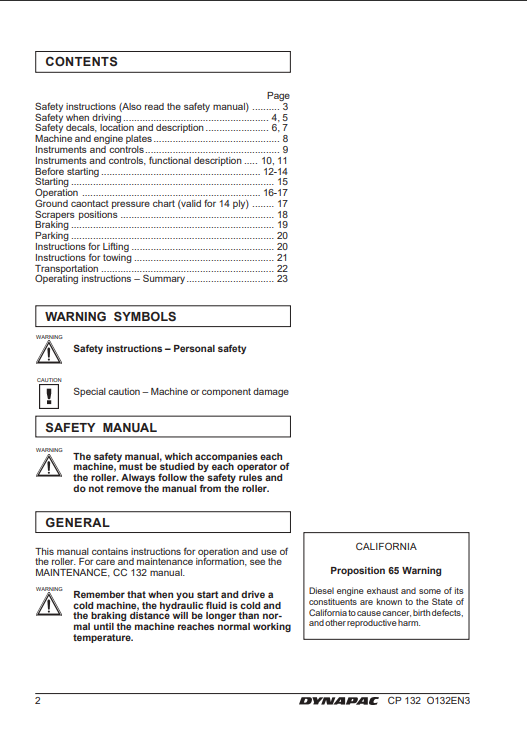 The Dynapac CP132 Operation Manual is an essential resource for operators and maintenance personnel, providing comprehensive guidance on the efficient use and upkeep of the CP132 model. This manual includes detailed instructions, safety protocols, and troubleshooting tips to ensure optimal performance and longevity of your equipment. With clear diagrams and step-by-step procedures, it empowers users to maximize productivity while minimizing downtime, making it a vital addition to your operational toolkit