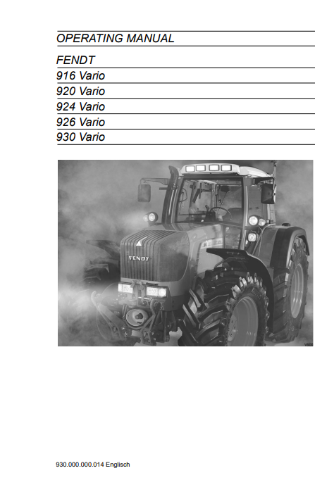 FENDT 916 Vario, 920 Vario, 924 Vario, 926 Vario, 930 Vario Operating Manual