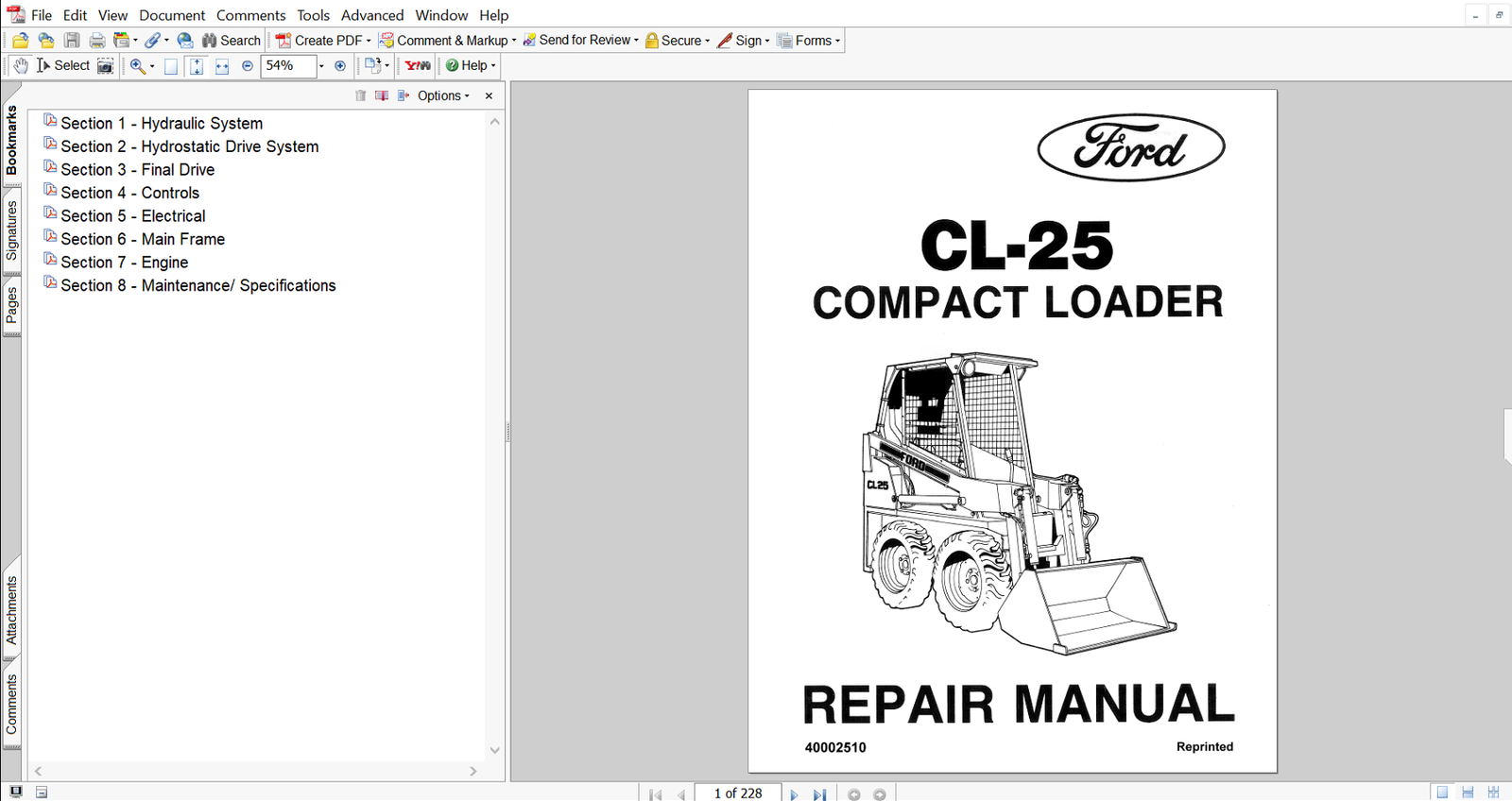Comprehensive technical guide for maintenance, troubleshooting, and repair procedures for Ford CL25 Skid SteerFord CL25 Skid Steer Service Repair Manual