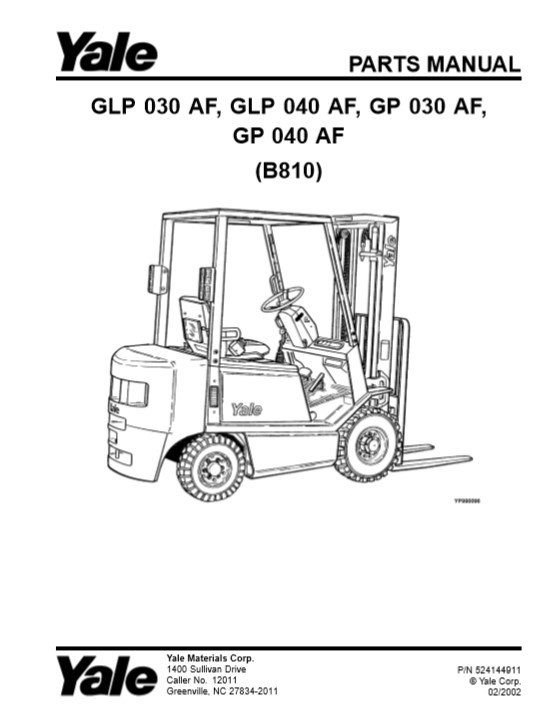 Yale GLP 030AF, GLP 040AF, GP 030AF. GP 040AF (B810) Forklift Parts Manual