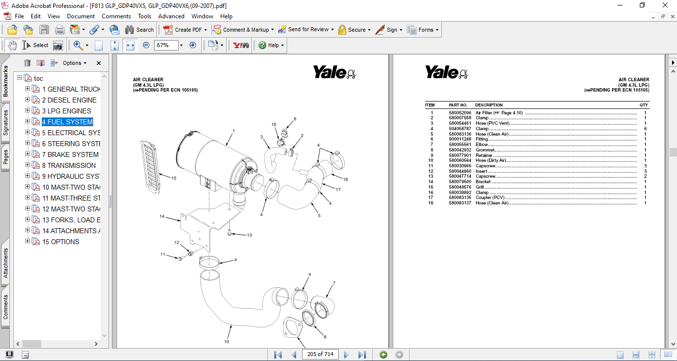 Yale Forklift GLP/GDP40VX5, GLP/GDP40VX6,GLP/GDP45SVX5, GLP/GDP45VX6, GLP/GDP50-55VX Parts manual