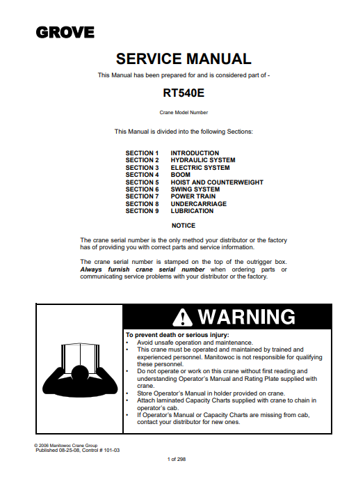 With This Original Factory Service Repair Manual The Technician can Find and Solve any problems encountered in the operation of your Grove Crane Models of :