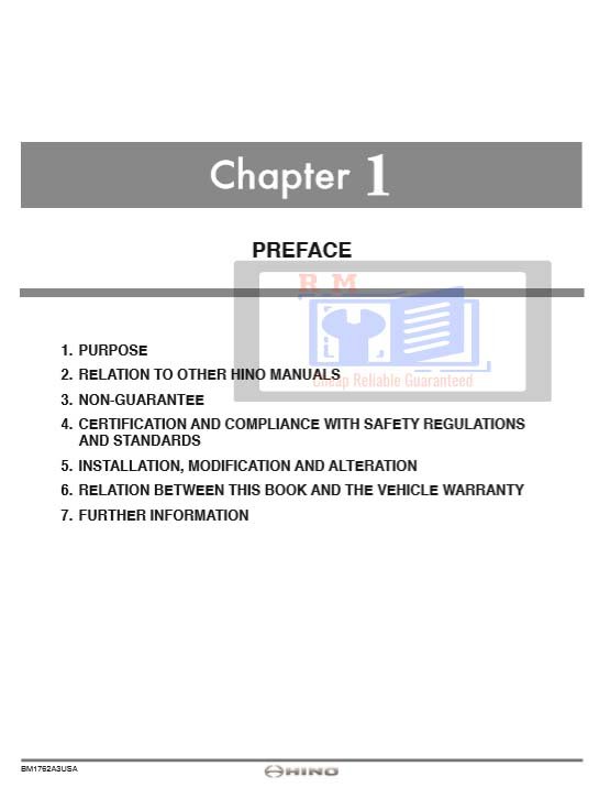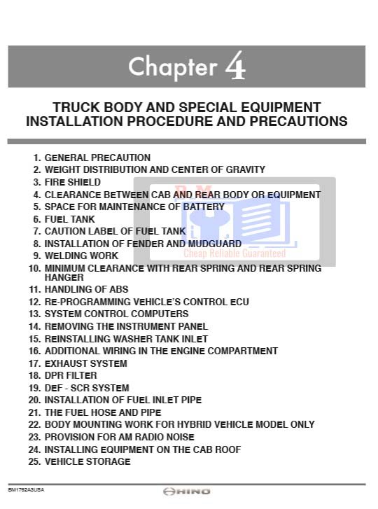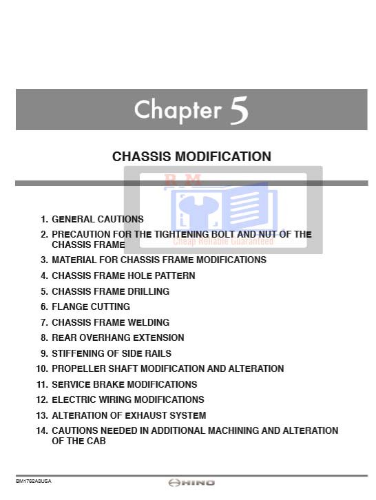 and equipment on Hino Chassis as well as a general guideline for modification or alteration of