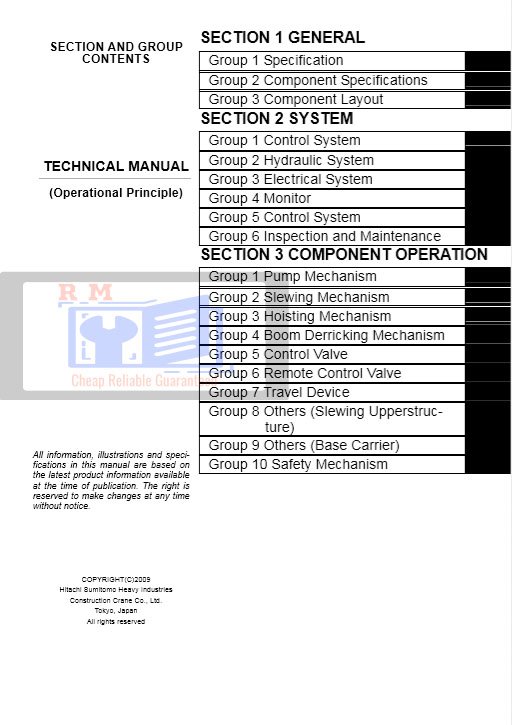Hitachi Sumitomo SCX400, SCX550, SCX700 Crawler Crane Technical Manual