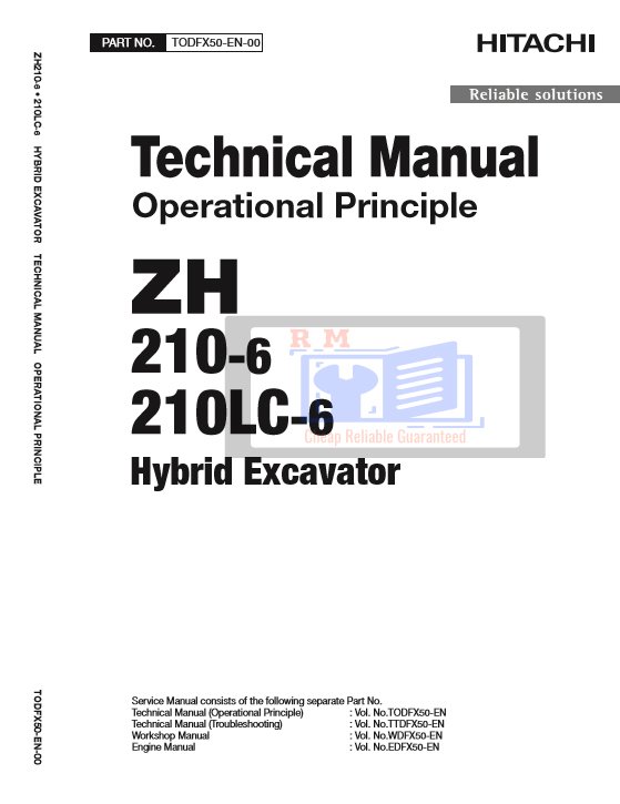 This official Operational Principles Manual provides a comprehensive overview of the internal systems and functions of the Hitachi ZH210-6 and ZH210LC-6 Hybrid Excavators. Designed for professional technicians, engineers, and advanced service personnel, this manual explains how each system operates—both mechanically and electronically—including the integrated hybrid components.
