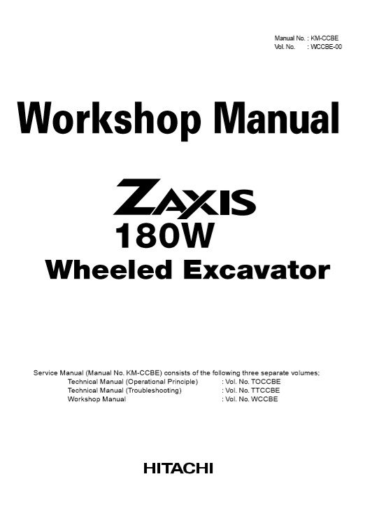 he Hitachi Zaxis ZX180W Workshop Manual and Diagrams is the official factory-issued service manual, providing comprehensive maintenance, repair, and diagnostic procedures for the ZX180W wheel excavator. Designed for professional technicians, mechanics, and service departments, this manual ensures accurate and efficient servicing according to OEM specifications.