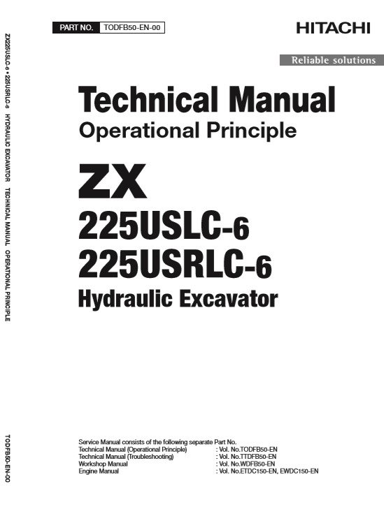 The Hitachi ZX225USLC-6 and ZX225USRLC-6 Technical Manuals are the official OEM resources for advanced system diagnostics, hydraulic and electrical testing, and detailed operational theory of your Zaxis-6 series compact radius excavators. These manuals are designed for experienced technicians, engineers, and service professionals who need precise factory-level information to perform accurate troubleshooting and system analysis.
