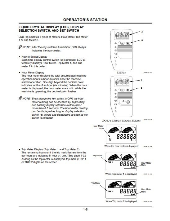Enhance your operational efficiency with the Hitachi ZX27U-2, ZX30U-2, ZX35U-2, ZX40U-2, and ZX50U-2 Excavator Operator’s Manual. This comprehensive guide provides essential information on the features, maintenance, and safe operation of these powerful excavators, ensuring you maximize their performance on the job site. With clear instructions and detailed diagrams, this manual is an invaluable resource for both novice and experienced operators, helping you to maintain optimal functionality and extend the lifespan of your equipment. Invest in this manual today to ensure your excavator operates at its best