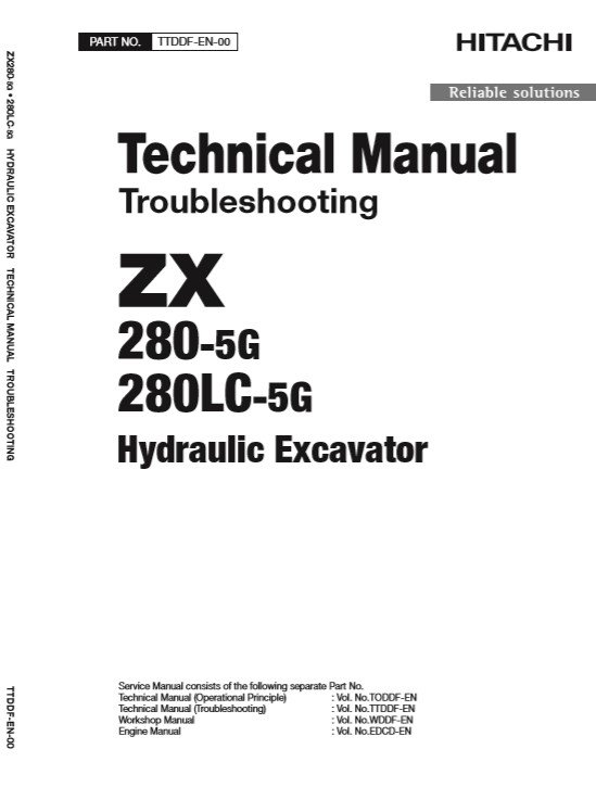 Hitachi ZX280-5G and ZX280LC-5G technical manuals, providing essential information for operation and maintenanceHitachi ZX280-5G, Hitachi ZX280LC-5G Technical Manuals