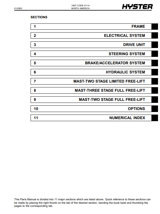 With This Original Factory Spare Parts Manual The Technician can easily find any Part Number and Correct Parts encountered in the operation of your Hyster Forklift Models of :