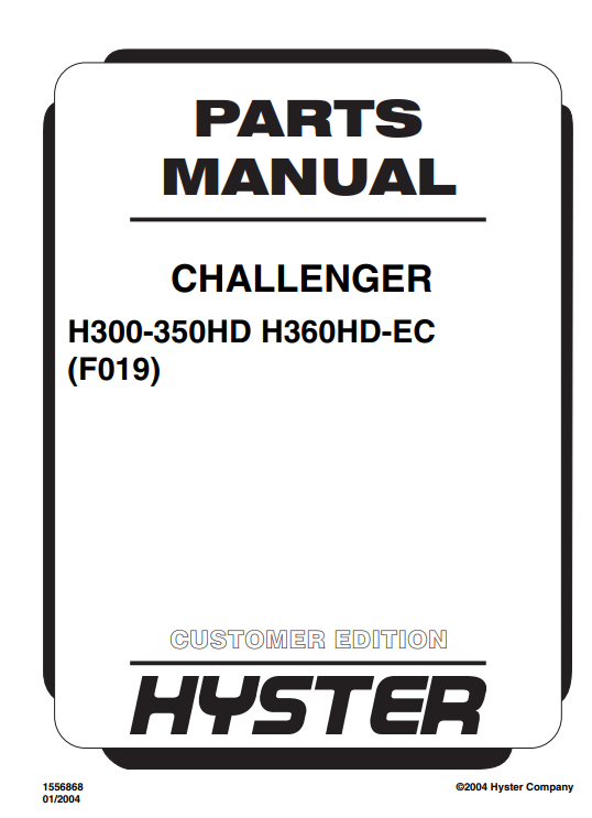 Hyster H300, H300HD. H360HD-EC (F019) Forklift Parts Manual
