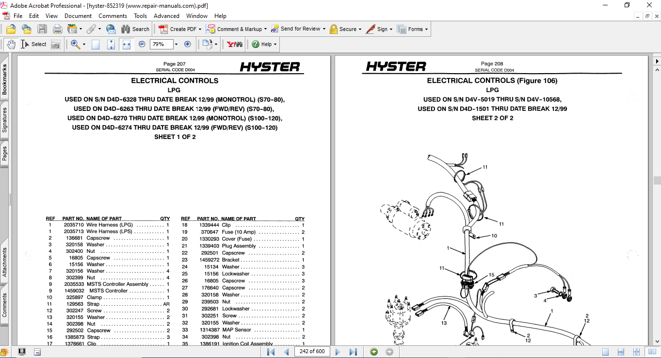 Hyster S70XL, S80XL, S100XL, S120XLS, S120XL (D004) Forklift Parts Manual
