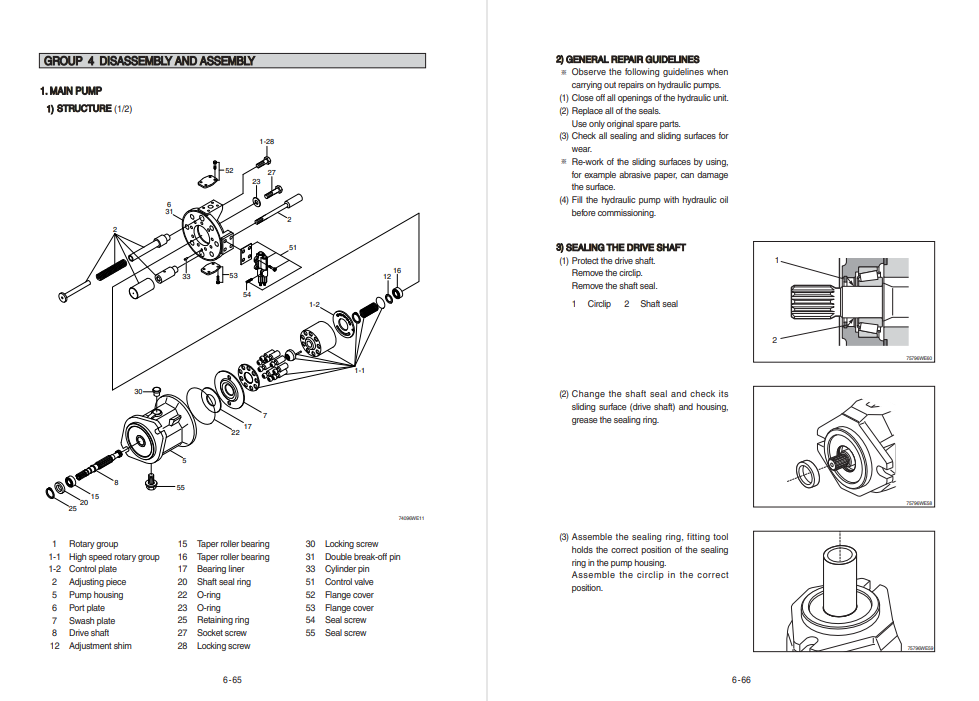 This group explains the order to be followed when removing, installing, disassembling or assembling