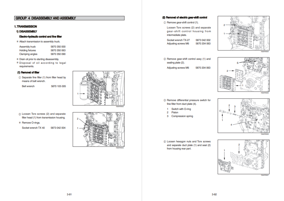This group explains the order to be followed when removing, installing, disassembling or assembling