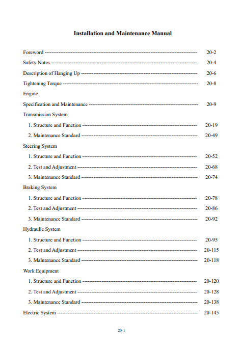 Hyundai Motor Grader HG170 Installation and Maintenance Manual