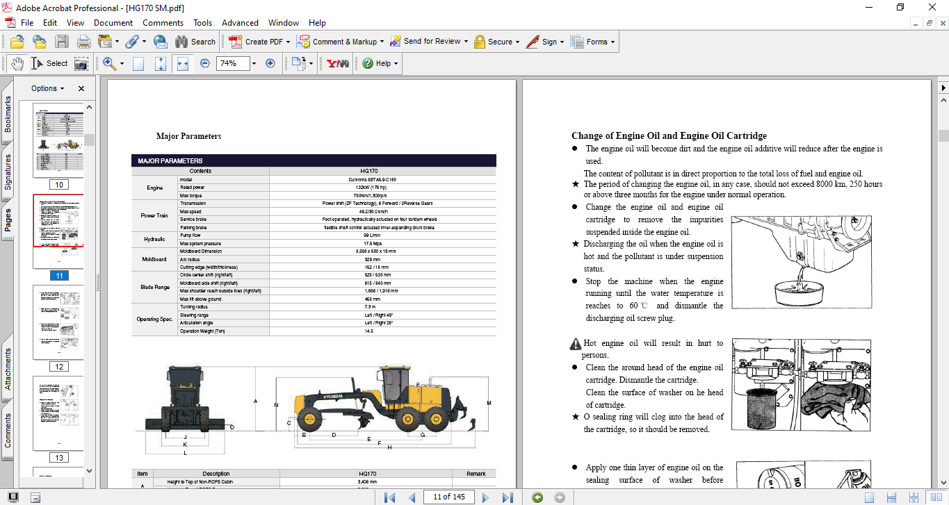 Hyundai Motor Grader HG190 Installation and Maintenance Manual
