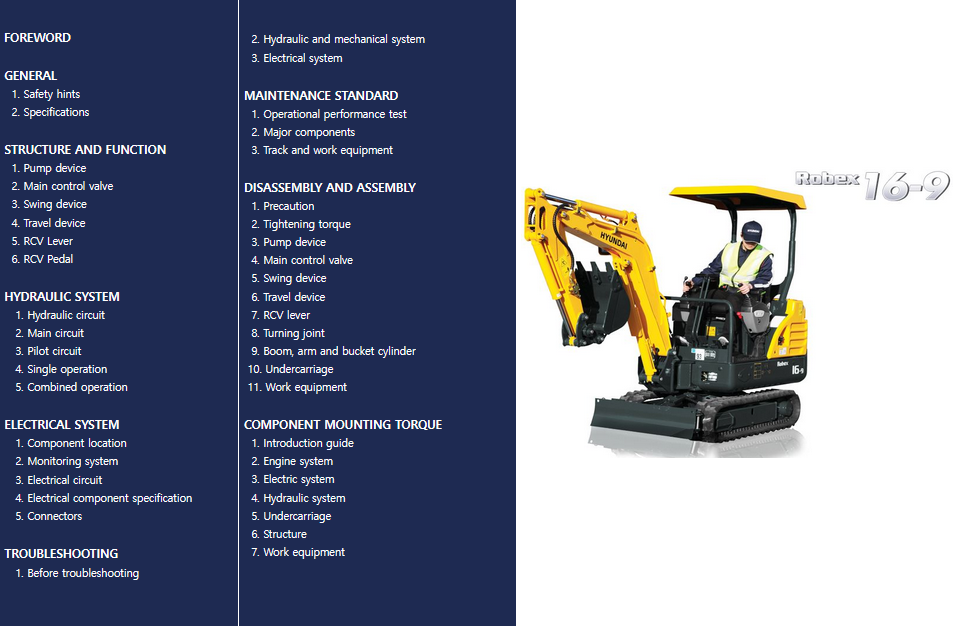 Hyundai R16-9 Mini Excavator Service Repair Manual