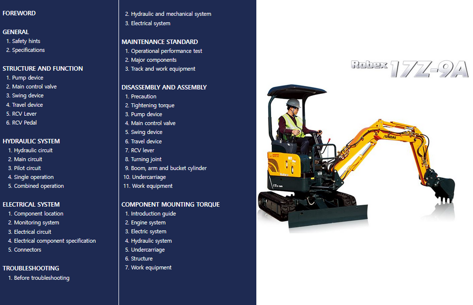 With This Original Factory Service Repair Manual The Technician can Find and Solve any problems encountered in the operation of your Hyundai Excavator Models of :