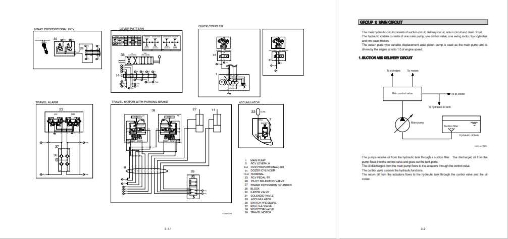 This section explains the hydraulic circuit, single and combined operation.