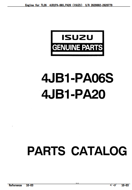 Takeuchi TL26 Engine ( 4JB1-PA06S, 4JB1-PA20 ) Parts Catalog