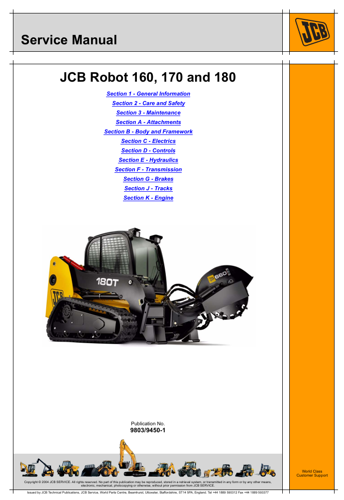 The JCB Robot 180 HF Skid Steer Loader Service Repair Manual is an essential resource for any technician or DIY enthusiast looking to maintain or repair their skid steer loader with confidence. This comprehensive manual provides detailed instructions, schematics, and troubleshooting tips specifically tailored for the JCB Robot 180 HF model, ensuring that you have all the information needed to keep your equipment running smoothly. With clear diagrams and step-by-step procedures, this manual covers everything from routine maintenance to complex repairs, allowing you to save time and money by tackling issues in-house. Whether you are a seasoned professional or a novice, this service manual is designed to enhance your understanding of the machine’s mechanics, ensuring optimal performance and longevity of your skid steer loader. Invest in the JCB Robot 180 HF Service Repair Manual today and empower yourself with the knowledge to handle any maintenance challenge that comes your way