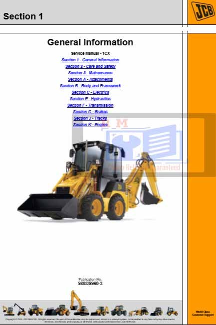 With This Service Repair Manual The Technician can solve any problems encountered in the operation of your JCB Loaders