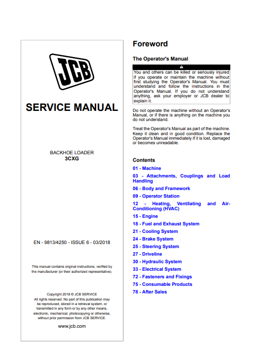 The Factory was highly recommended use this manual for Technicians before you touch your JCB Machine