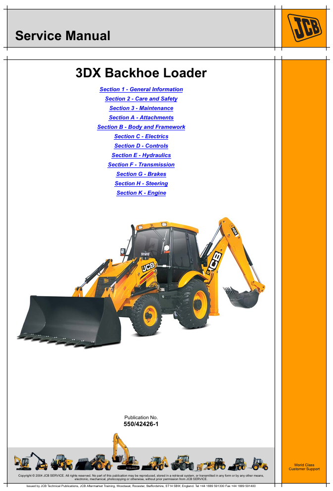 With this original factory Service manual, the technician can detect and solve any problems encountered when repairing your JCB 3DX Backhoe Loaderand This workshop repair manual for the JCB 3DX Backhoe Loader provides detailed instructions and technical information for maintenance and repair tasks to keep your equipment in top condition.