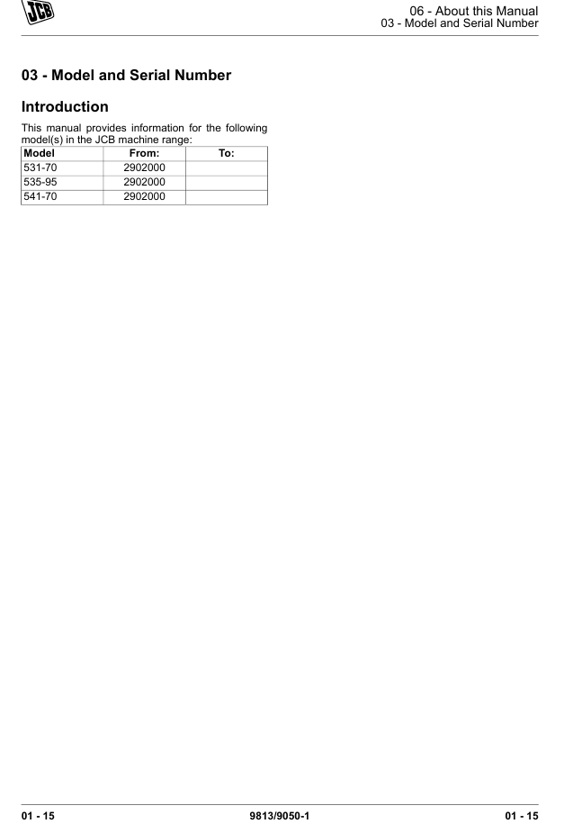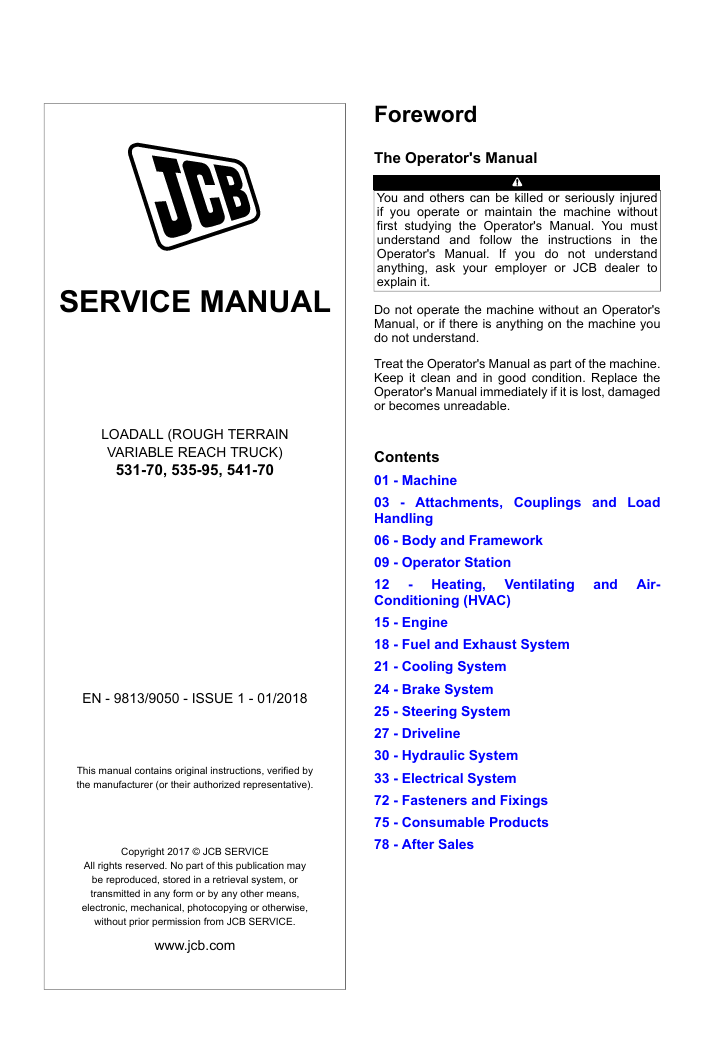 With this original factory Service manual, the technician can detect and solve any problems encountered when repairing your JCB 535-95 Loadall and This workshop repair manual for the JCB 535-95 Loadall provides detailed instructions and technical information for maintenance and repair tasks to keep your equipment in top condition.