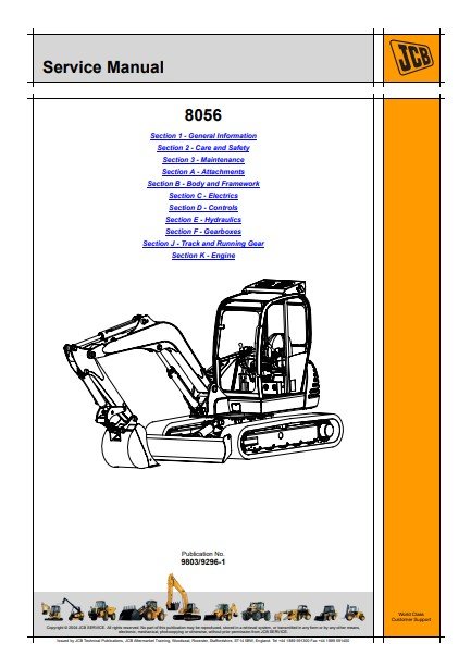 The JCB 8056 Mini Crawler Excavator Service Repair Manual is an essential resource for maintaining and repairing your excavator with precision and ease. This comprehensive guide provides detailed instructions, diagrams, and troubleshooting tips, ensuring that you can efficiently address any issues that may arise. With this manual, you can enhance the longevity and performance of your equipment, making it a valuable investment for any operator or technician