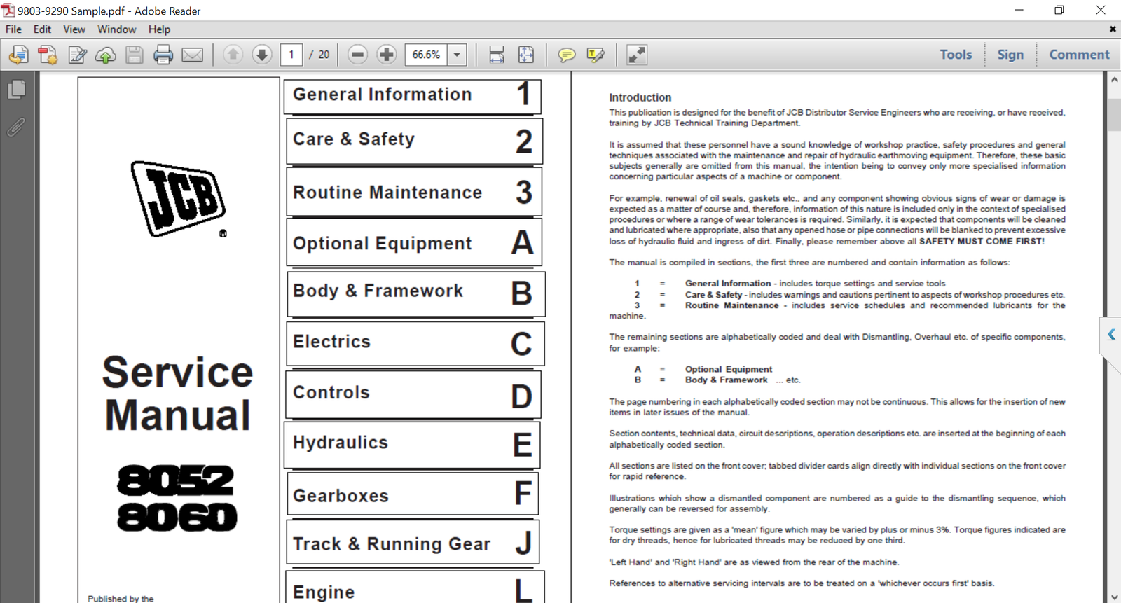 The JCB 8060 Mini Excavator Service Repair Manual is an essential resource for any technician or DIY enthusiast looking to maintain and repair their equipment with precision and confidence. This comprehensive manual provides detailed instructions on troubleshooting, servicing, and repairing the JCB 8060 model, ensuring that you can keep your excavator running smoothly and efficiently. With clear diagrams, step-by-step procedures, and in-depth technical specifications, this manual covers everything from engine maintenance to hydraulic system repairs. Whether you are performing routine checks or tackling more complex issues, the JCB 8060 Mini Excavator Service Repair Manual equips you with the knowledge and tools necessary to extend the life of your machinery and enhance its performance, making it a valuable addition to your workshop library